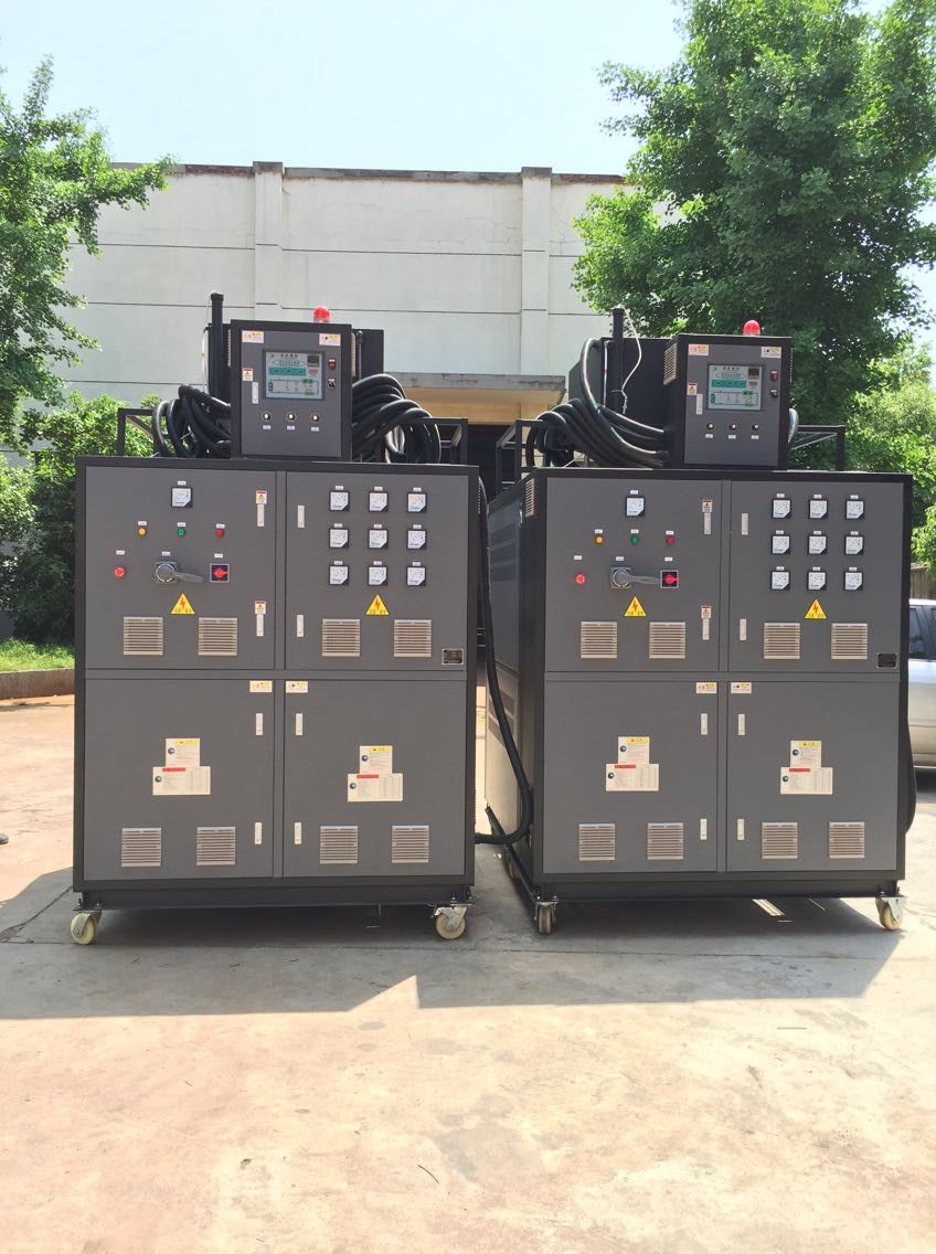 高溫油溫機(jī)就是以導(dǎo)熱油為傳熱媒介的模溫機(jī)。油溫機(jī)自身設(shè)有一個(gè)儲(chǔ)油箱,工作時(shí)導(dǎo)熱油由儲(chǔ)油箱進(jìn)入系統(tǒng),導(dǎo)熱油通過加熱器升溫,然后經(jīng)循環(huán)泵打入到模具或其它需要控溫的設(shè)備,導(dǎo)熱油從控溫設(shè)備出來后,再返回到系統(tǒng),周而復(fù)始。